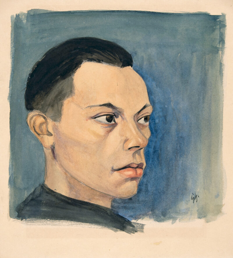 Kopf Alfred Hildinger (Studie zu "Der Mestize"). Aquarell über Bleistift auf Karton. Um 1920. 25 x 23 cm, unter Passepartout. Unter Glas gerahmt.