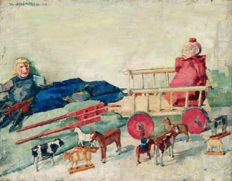 Stilleben mit Spielzeug. Öl auf Leinwand. 1910. 58,5 x 75 cm. Gerahmt.