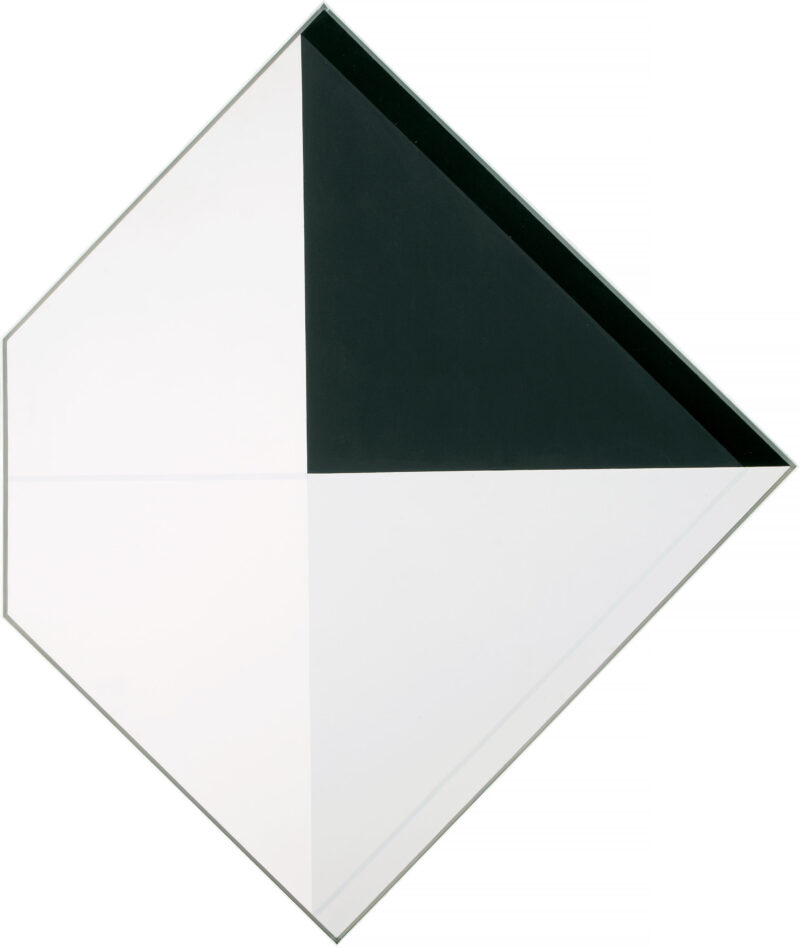 Abgebildet in: Kunst als Konzept. Konkrete und geometrische Tendenzen seit 1960 im Werk deutscher Künstler aus Ost- und Südosteuropa. Regensburg, Ostdeutsche Galerie, 1996, Katalog-Nr. 157. - Vgl. die Serie der Spiegelungen in: Hans-Peter Riese, Klaus J. Schoen, Köln 2015, S. 288-303. - Das Werk wird als Rhombus gehängt. Quadratisch gemessen sind die Maße 134,5 x 134,5 cm. - Leichte Lagerspuren.