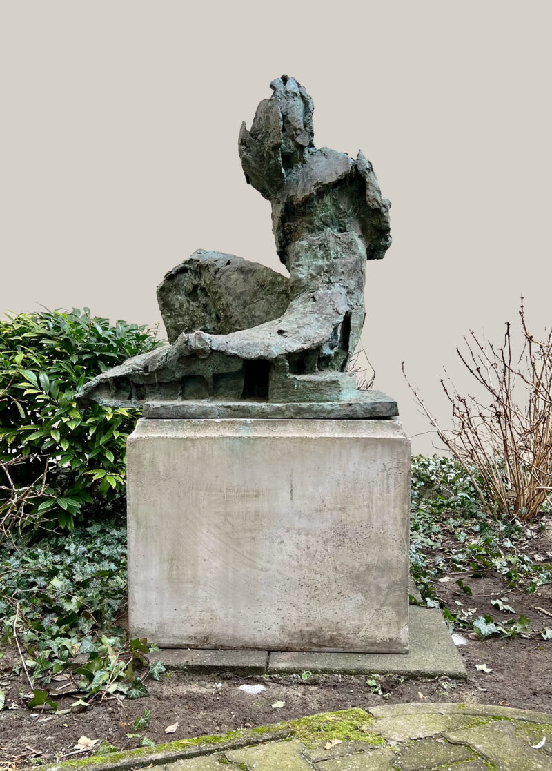 Figura aktiva. Bronze mit graugrüner Patina. 2000/03. 93,5 x 90,5 x 56,5 cm. Auf Betonsockel (Höhe: 61,5 cm).