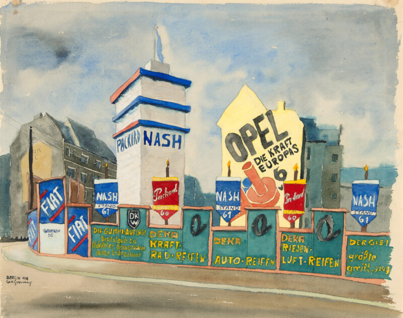 Autoausstellung Berlin. Aquarell u. Feder in Tusche auf Bütten. 1928. 40 x 50 cm, im Passepartout freigestellt. Unter Glas gerahmt.