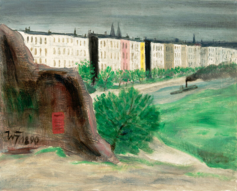 Monogrammiert u. datiert. Verso signiert, datiert, betitelt, mit Adresse u. zahlreichen Ausstellungsorten versehen: Basel/Art 87, Paris 88, Finnland 88, Peking Shanghai 88, FKK 1989 F/M. Mit dem Etikett "750 Jahre Berlin / Staatlicher Kunsthandel der DDR".