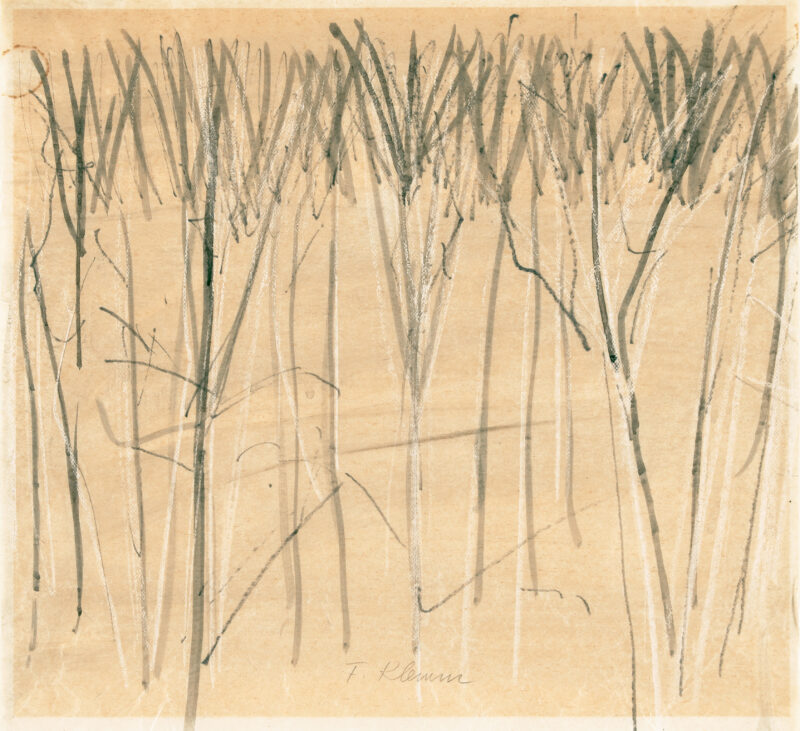 Wald. Pinsel in Tusche u. Kreide auf Packpapier. Um 1968. 49 x 53,5 cm, im Passepartout freigestellt. Unter Glas gerahmt.