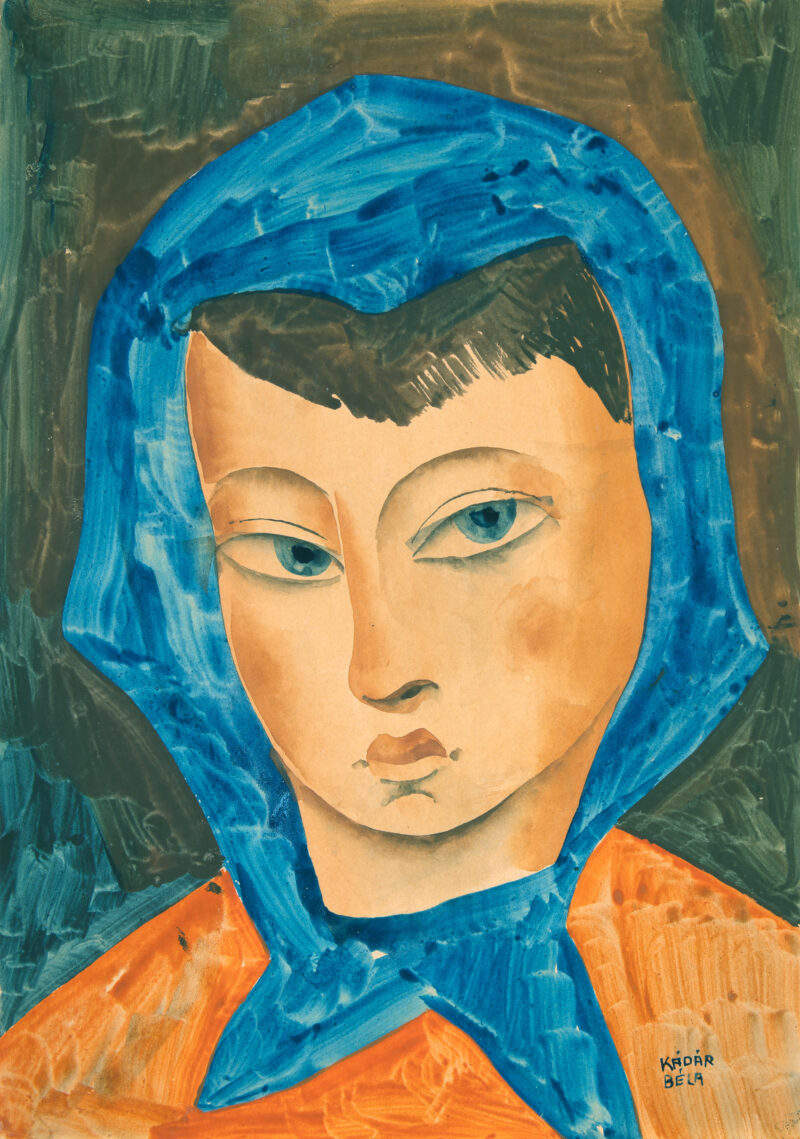 Verso weitere vollwertige Arbeit in Gouache u. Kohle (Porträt), dort von der Tochter Zsuzsa Kádár autorisiert.