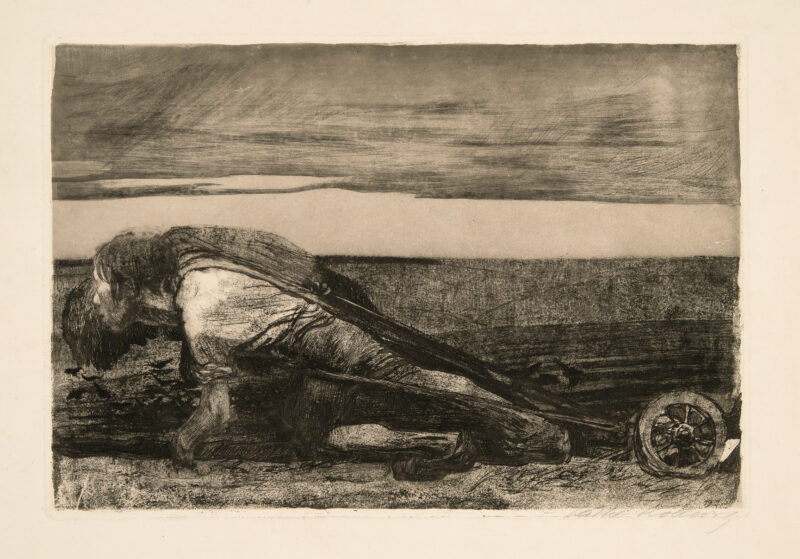 Die Pflüger (Blatt 1 aus dem Zyklus "Bauernkrieg"). Radierung in Schwarzbraun auf chamoisfarbenem Kupferdruckkarton. 1907. 30,2 x 44,5 (41,3 x 53,5) cm.