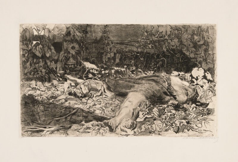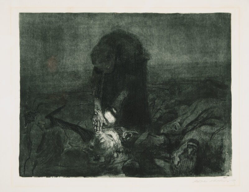 Schlachtfeld (Blatt 6 aus dem Zyklus "Bauernkrieg"). Radierung in Grünschwarz auf Van Gelder Zonen Bütten. 1907. 39,7 x 51,3 (51,2 x 65) cm.