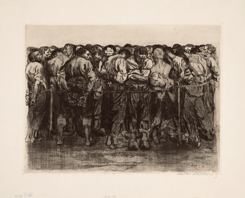 Die Gefangenen (Blatt 7 aus dem Zyklus "Bauernkrieg"). Radierung auf chamoisfarbenem Kupferdruckkarton. 1908. 30,5 x 41,6 (42,6 x 52,5) cm.