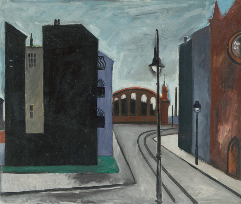 Nordbahnhof Berlin. Öl auf Leinwand. 1957. 50,5 x 60 cm. In Künstlerleiste gerahmt.