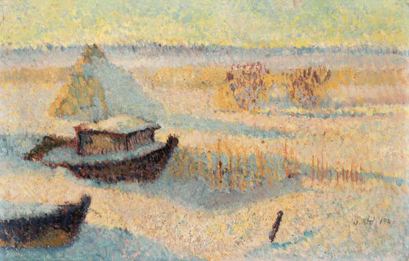 Signiert, monogrammiert u. datiert. Verso betitelt "Am Haff" u. mit der Werknummer "108" versehen.