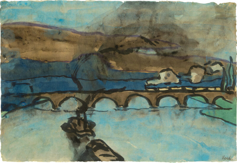 Die Arbeit ist bei der Emil Nolde Stiftung, Seebüll, unter der Register-Nr. "Fr.A.2156" verzeichnet und wird in das in Vorbereitung befindliche Werkverzeichnis aufgenommen (Bestätigung der Stiftung und Fotoexpertise von Prof. Dr. Martin Urban vom 10.3.1994 beigegeben). - Provenienz: Sammlung Deutsche Bank, Frankfurt am Main (die Rahmenrückwand mit Etikett); Galerie Paffrath, Düsseldorf, dort 2022 vom Vorbesitzer erworben (Rechnung in Kopie beigegeben). - Der linke Blattrand mit einem Löchlein.