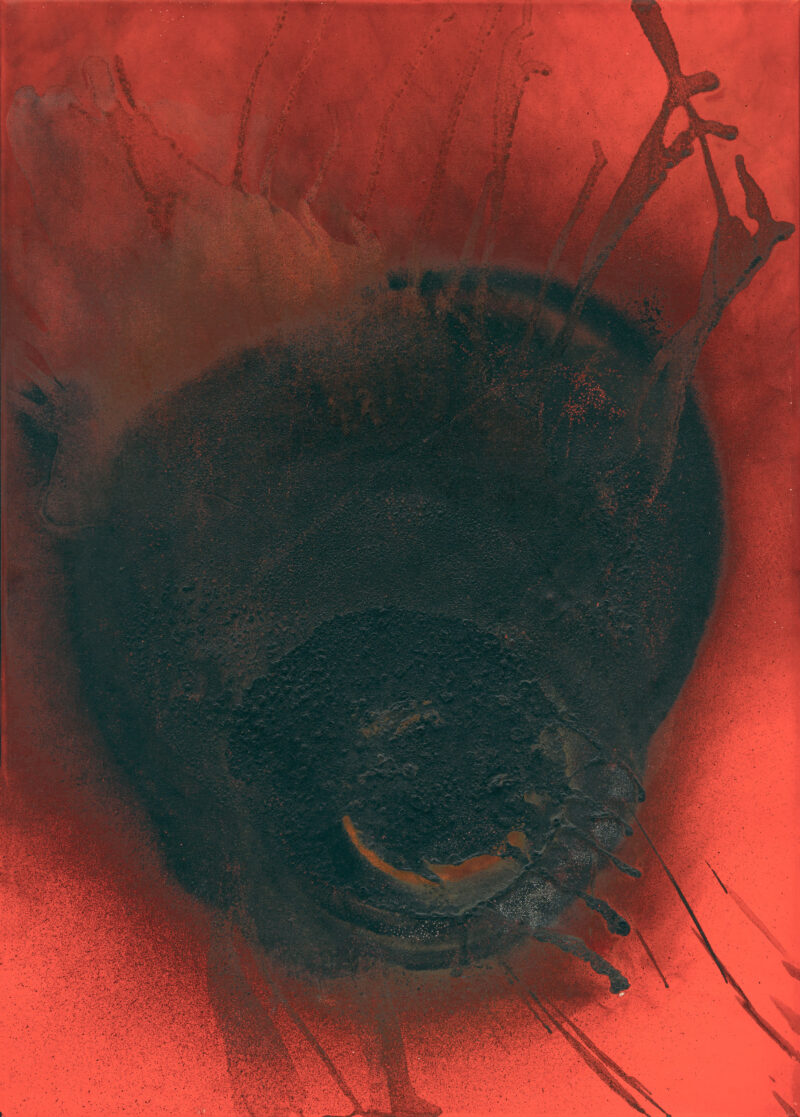 Hotbed. Öl, Feuer u. Ruß auf Leinwand. 1980. 70 x 50 cm. Gerahmt.