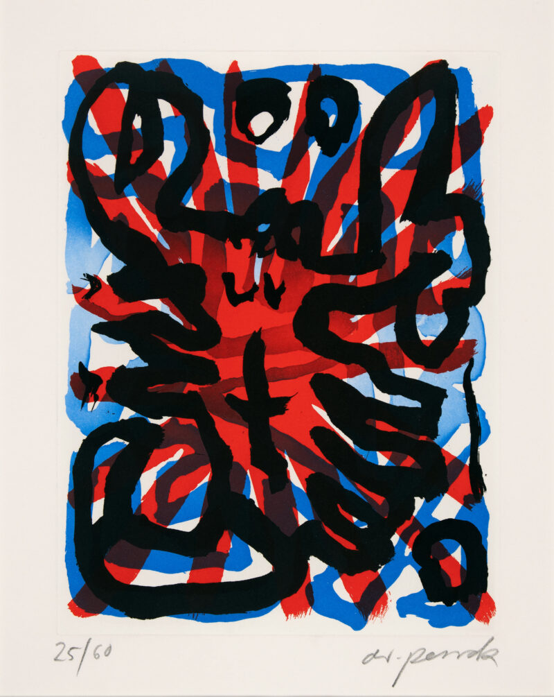 Sternzeichen Krebs (aus der Folge "Tierkreiszeichen"). Farbaquatintaradierung auf Bütten. 1995. 38,8 x 29,5 (65 x 50) cm, unter Passepartout. Unter Glas gerahmt.