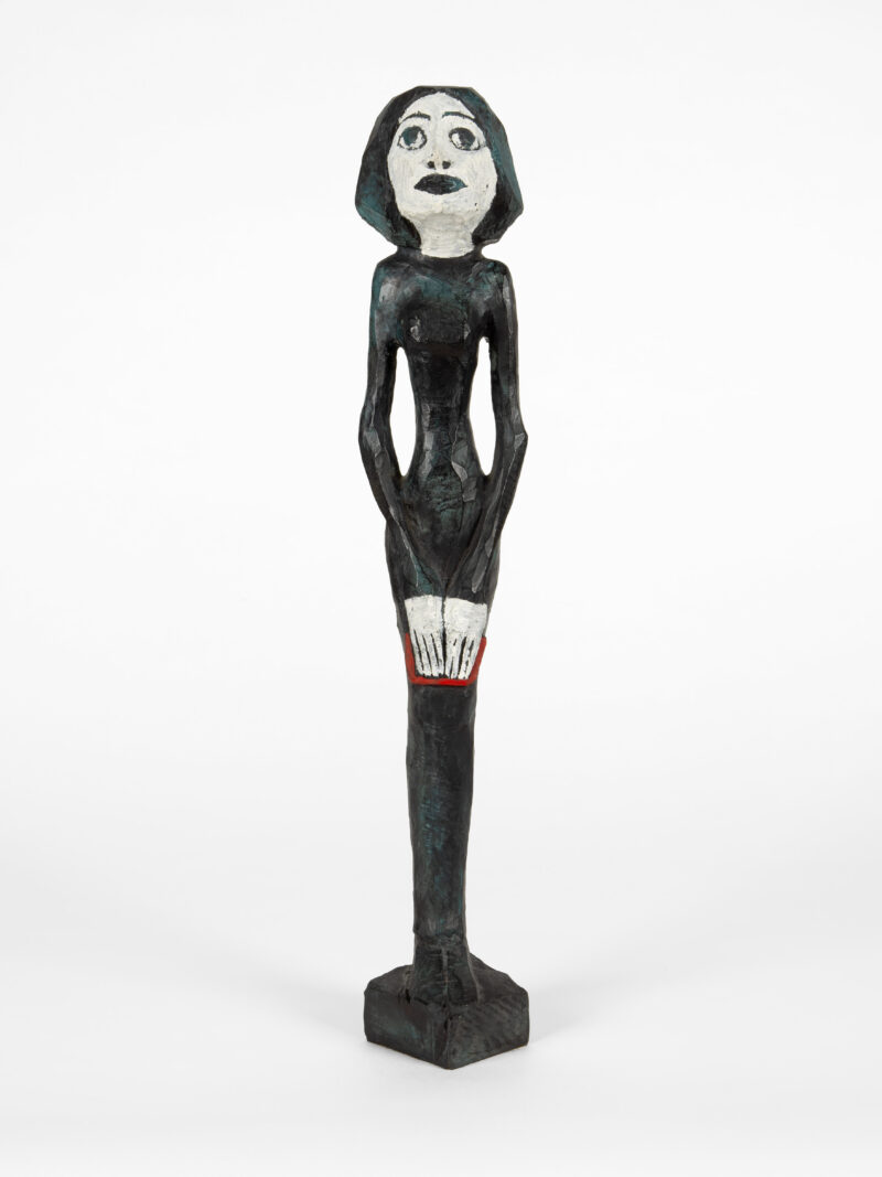 Frau mit Handtasche. Bronze mit schwarzgrüner Patina, bemalt. 2000. 47,5 x 6,5 x 5,5 cm.
