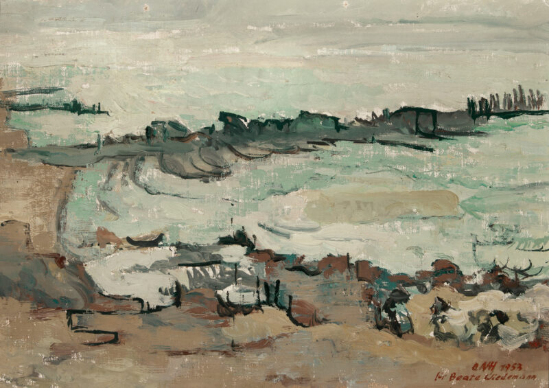 Blick zum Strand. Öl auf Leinwand auf Pappe. 1953. 23,8 x 34,2 cm. Gerahmt.