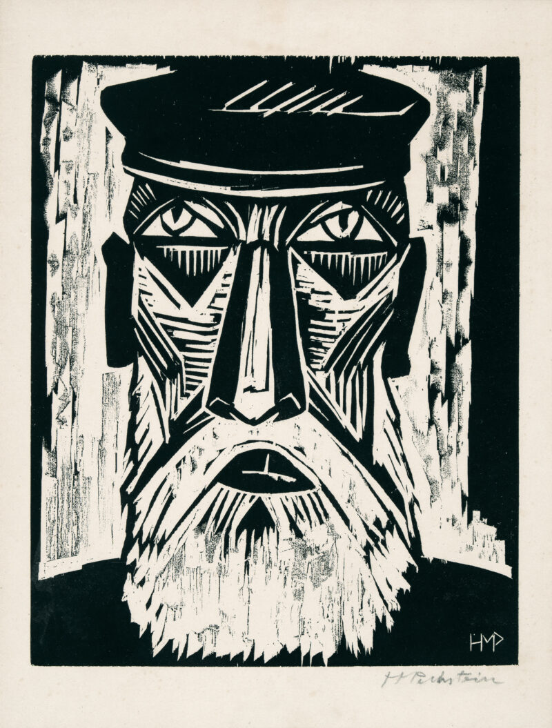 Fischerkopf IX. Holzschnitt auf chamoisfarbenem Bütten. 1921. 40,2 x 32 (50,5 x 37,5) cm. Unter Glas gerahmt.