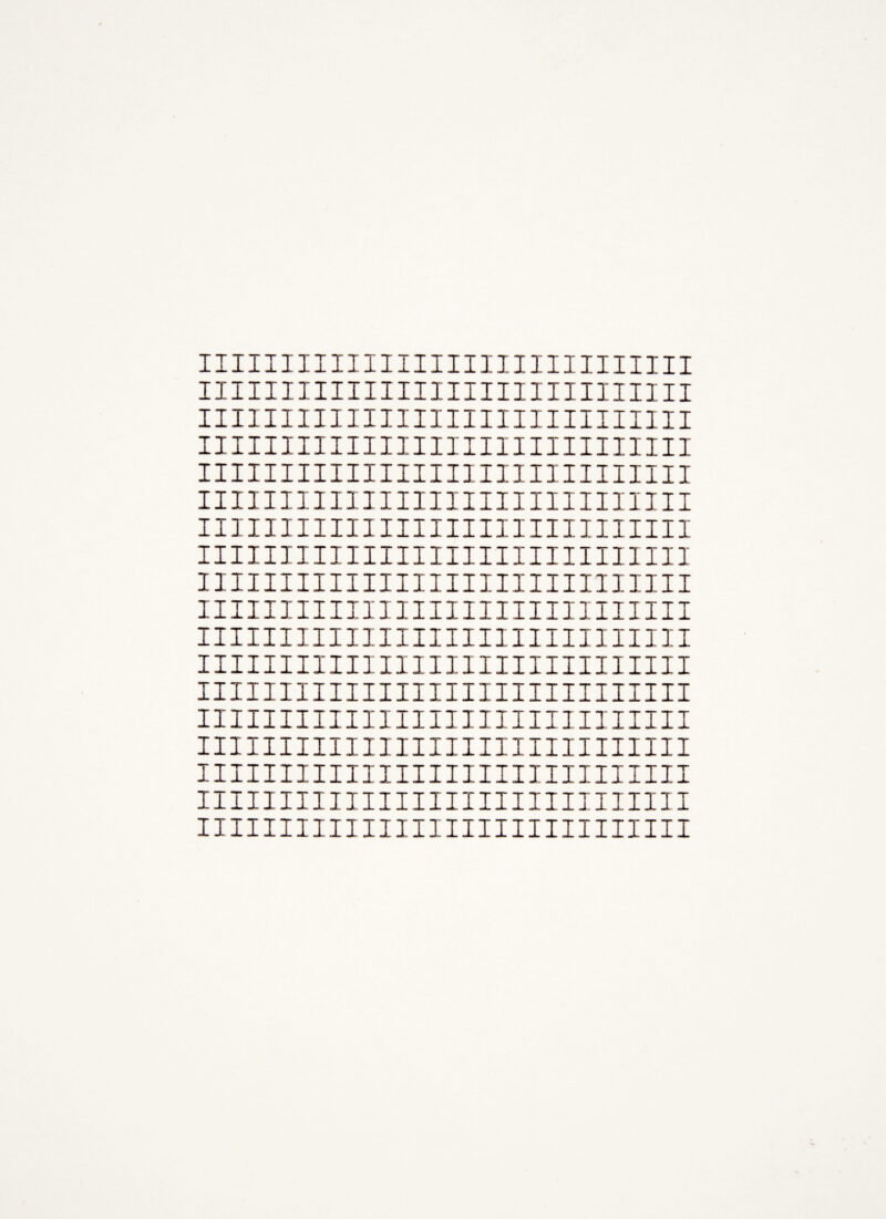 o.T. (TY-117). Schreibmaschine auf Papier. 1965. 7,7 x 7,7 (Blatt: 24 x 21) cm, unter Passepartout. Unter Glas gerahmt.